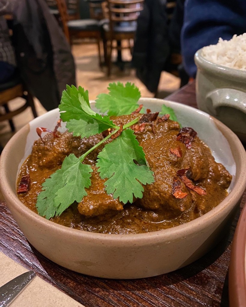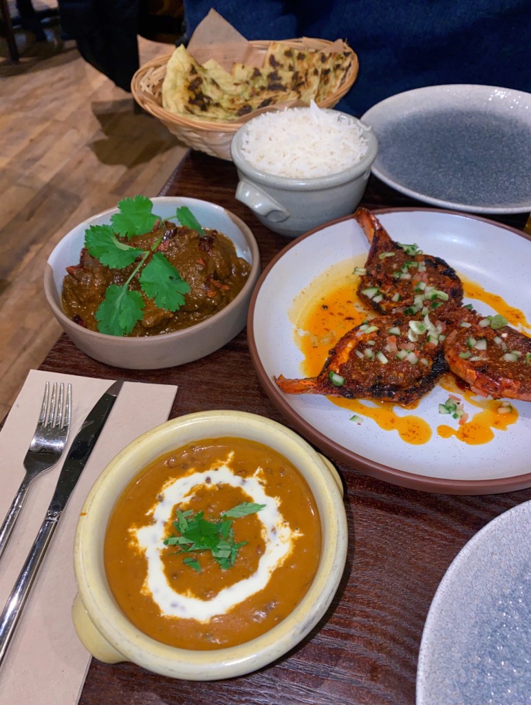 My highlight within the main courses was definitely the Rechado prawns in a spicy red paste. They were cooked perfectly and FULL of flavour! Closely followed by the Chettinad chicken (my bf’s favourite main dish). Chettinad cuisine is popular for including a variety of spices like red chilies, star anise, peppercorn, fennel seed, cinnamon, cumin seeds and bay leaves. This dish was again, full of flavour. Finally, the Dal Makhani. This is something I would never normally order for myself as I do tend to opt for meaty dishes but it was so creamy and buttery, full of lentils – we practically licked the plates clean. The garlic naan was also super soft and garlic-y (heaven) and even rice was cooked exactly right too.