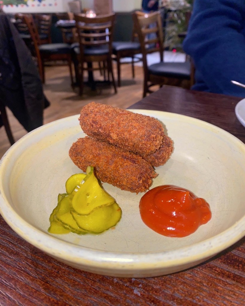 - Goan Beef Croquettes with Pickled Cucumber and House Ketchup