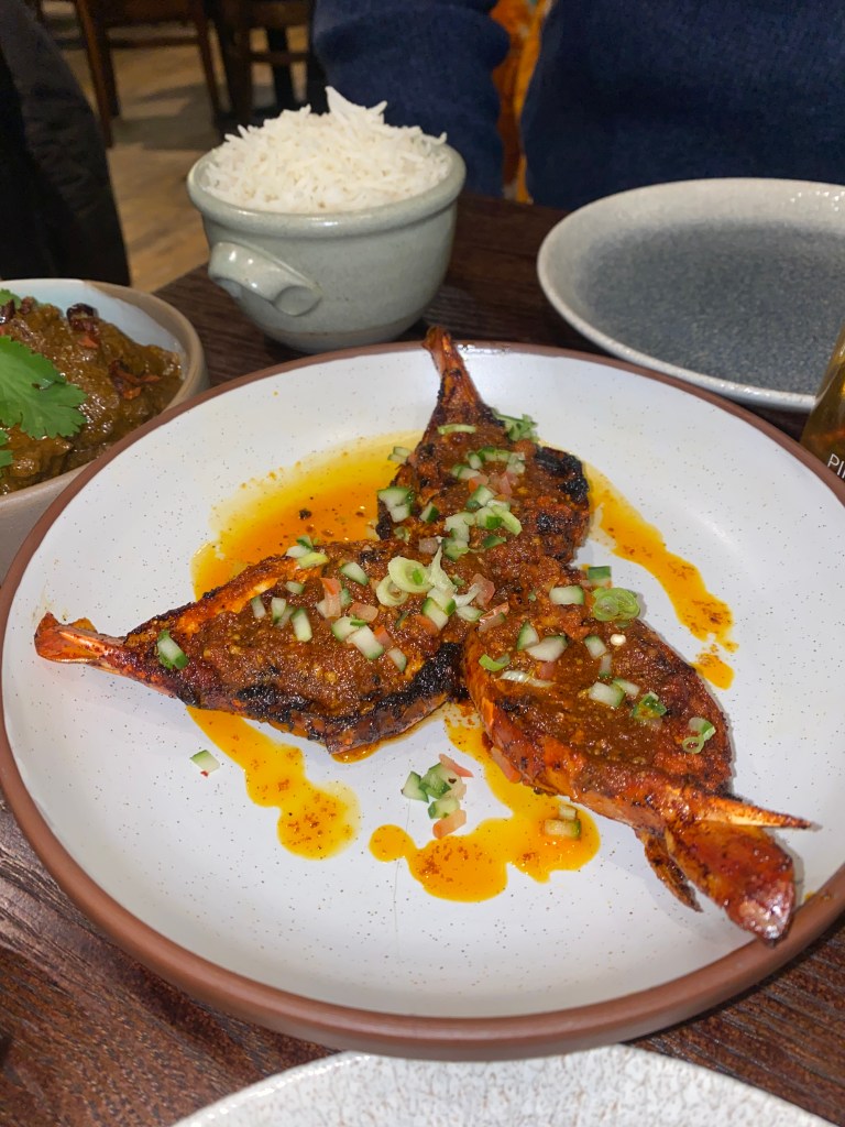 Every one of these dishes was amazing. The spicy green paste on the chicken wings was heavenly and the Aloo Chaat was very moreish (and my boyfriend’s favourite starter). My favourite starter was the Goan Beef Croquettes because they were so full of flavour and beef in almost a purée on the inside and really crispy on the outside! Even the pickled cucumber and house ketchup were noticeably good.